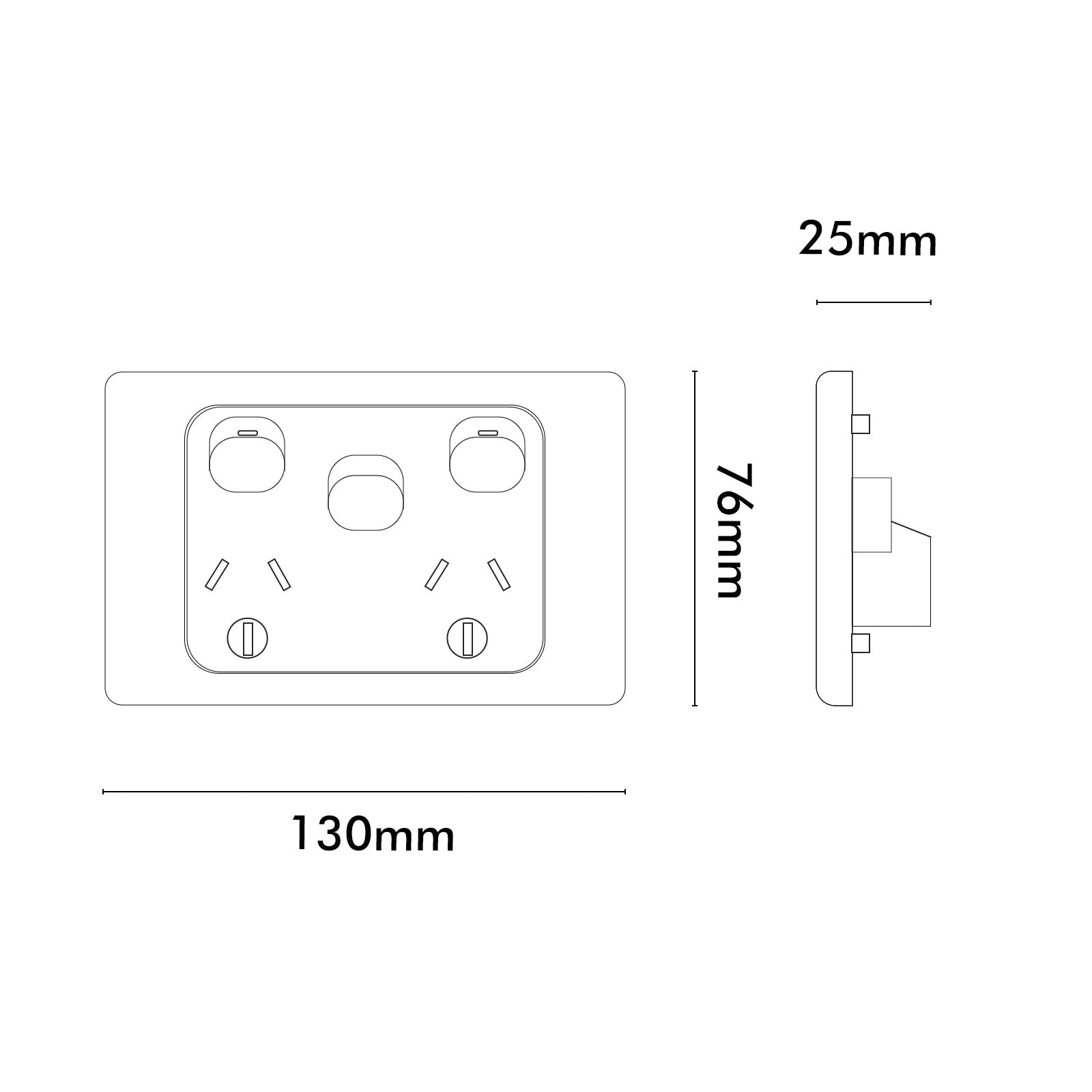 - Double switched outlet rated 250 volt 10amp