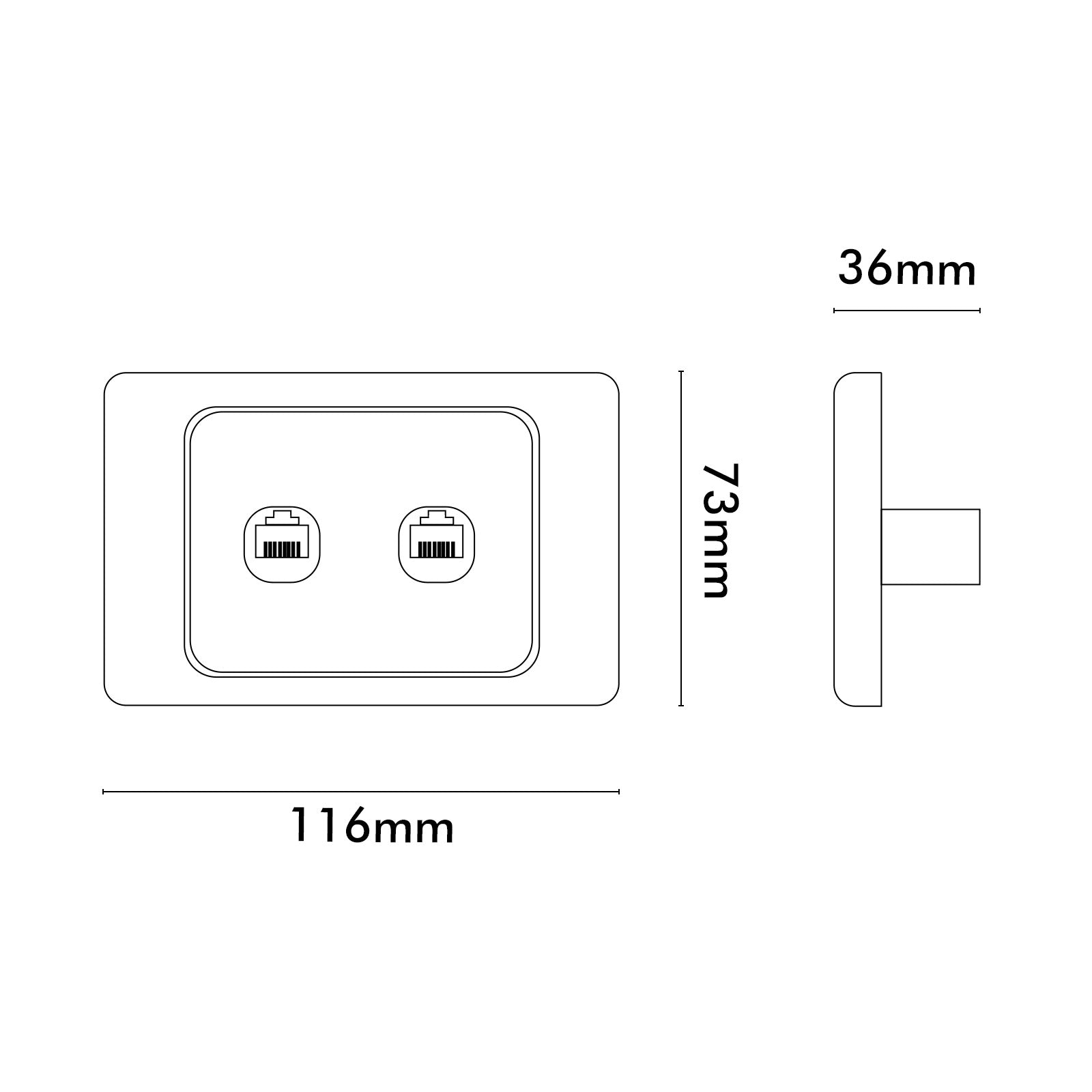 - Fitted with 2 x Cat6 network LAN keystone jacks