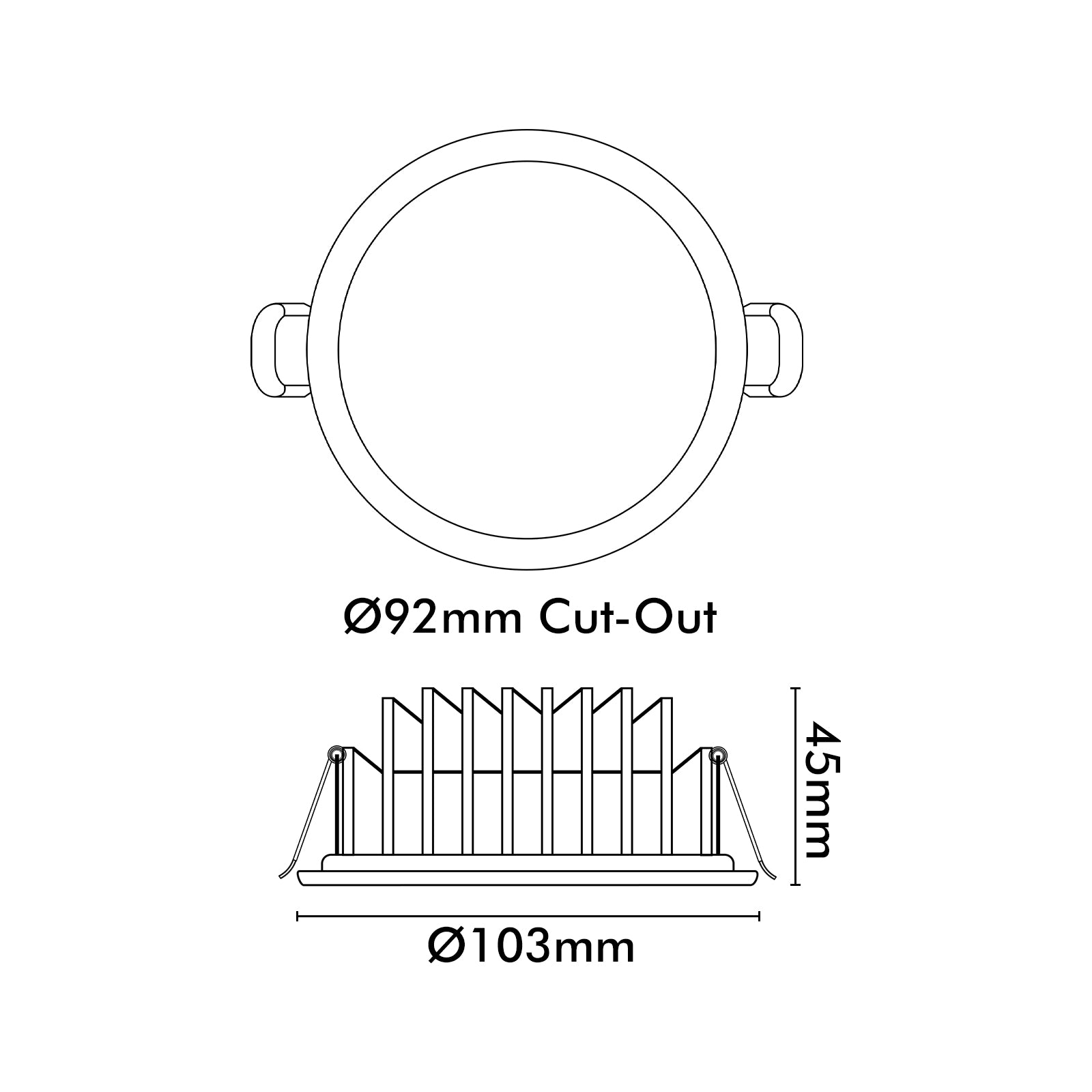 DETA 9W Tri-Colour Dimmable LED Downlight - White Metal Fascia & Low Recessed Lens Design
