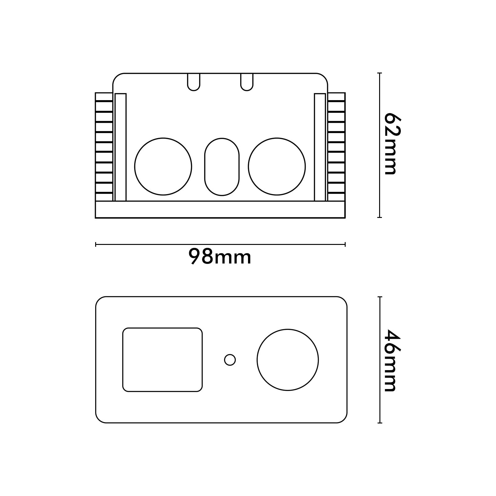 The wall mounting block with adjustable lugs suits all brands of DETA switches and PowerPoints. The case is polycarbonate with metal threaded inserts and has multiple conduit entry points.