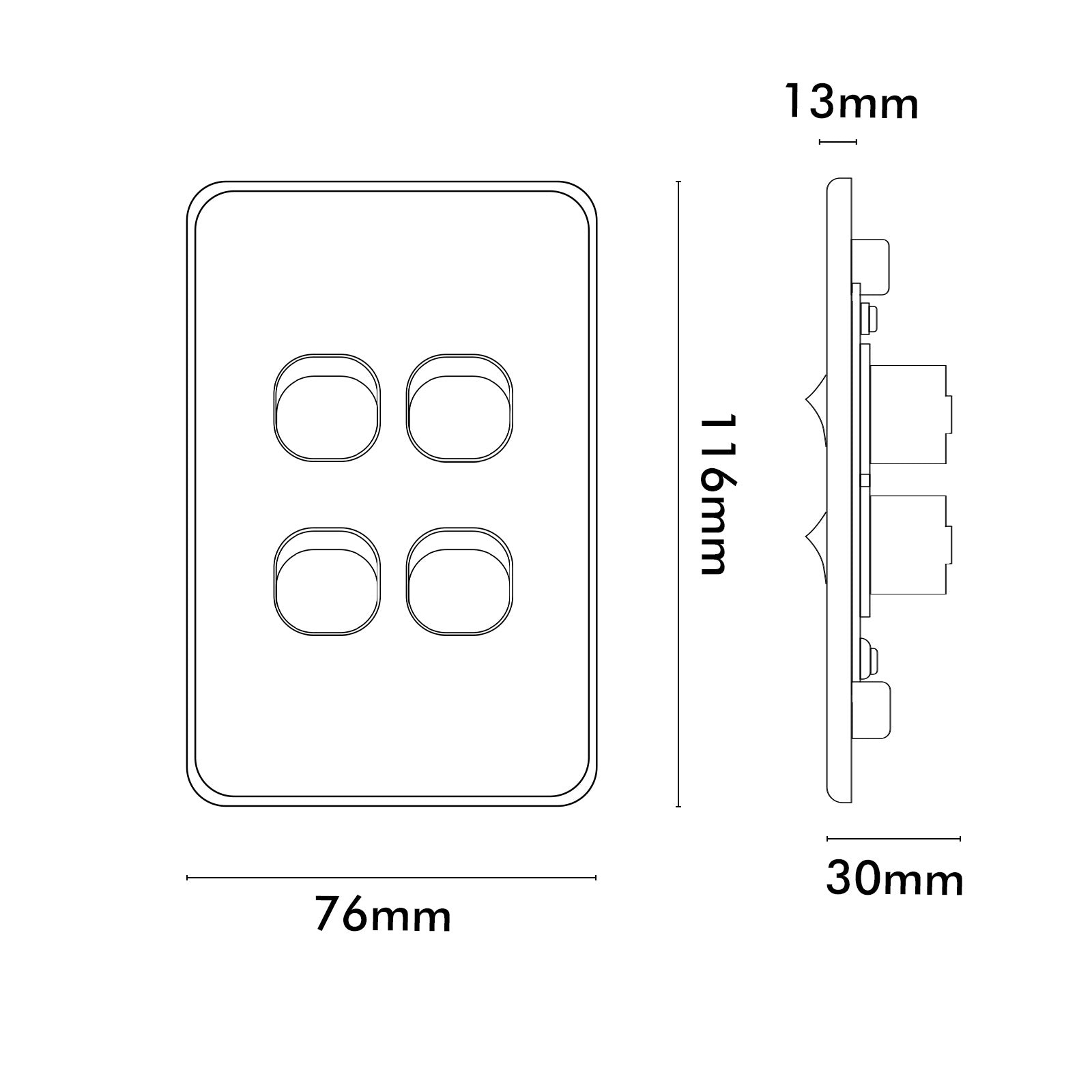 DETA Gloss White S-Line Quad Vertical Wall Switch