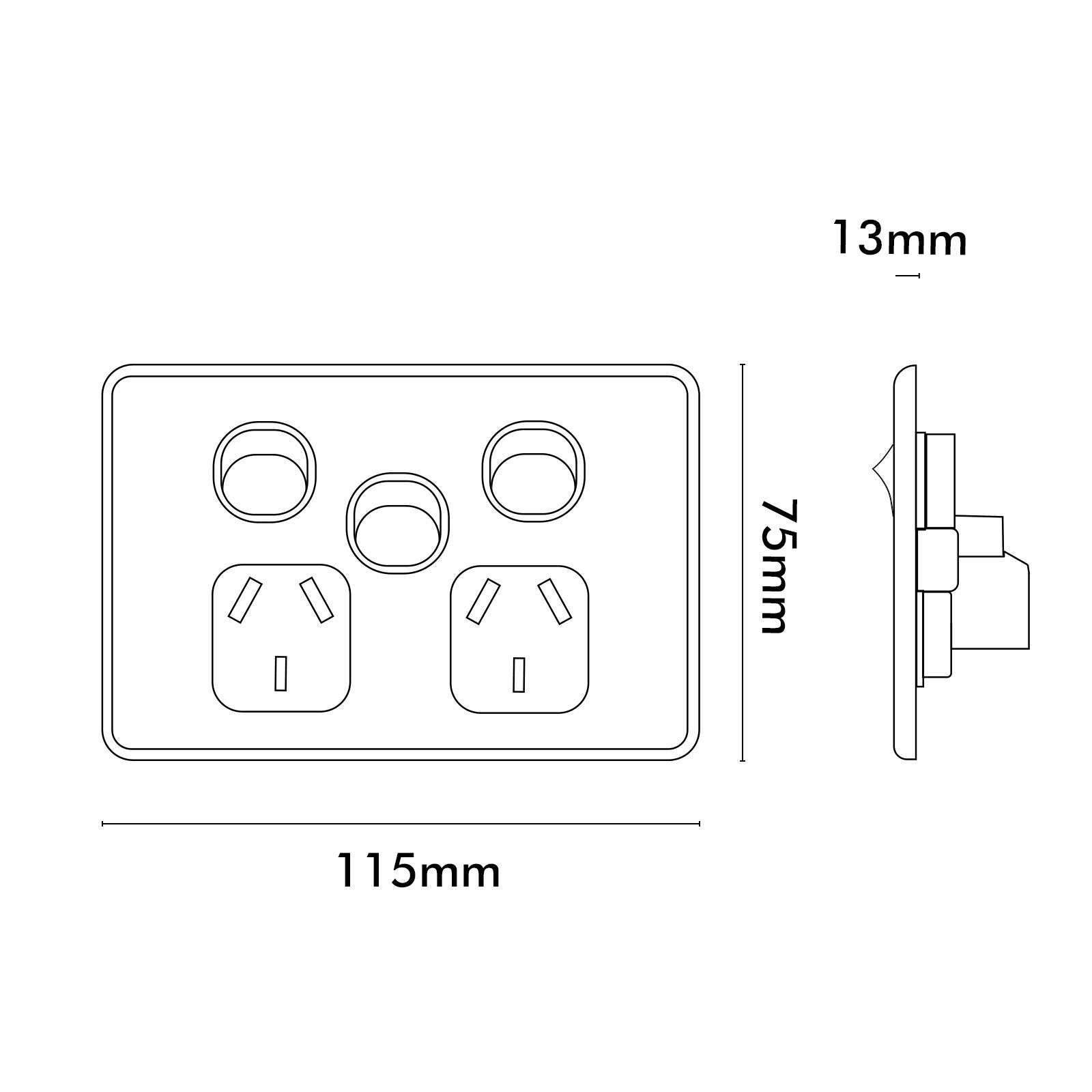 The DETA S-Line PowerPoint features a 4.3mm ultra-low profile face plate and comes with one extra switch rated at 16A. Installation is easy with the inclusion of a cut-out template with all S-Line Series products. Australian and New Zealand standards approved.