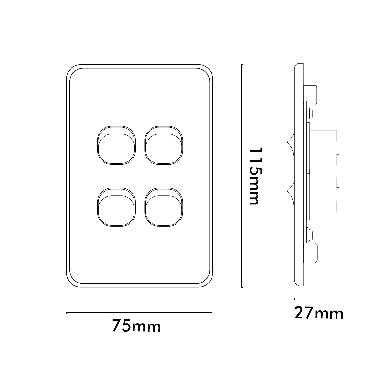 DETA Matte White S-Line Quad Vertical Wall Switch