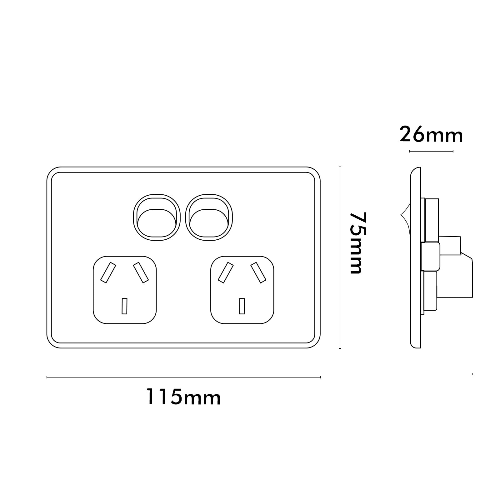 Comes with attractive clip-on surround. Manage your appliances and eliminate excess powerboards by installing the DETA Double S-Line Series PowerPoint with ultra-low profile 4.3mm rated at 10 Amps. Australian and New Zealand standards approved.