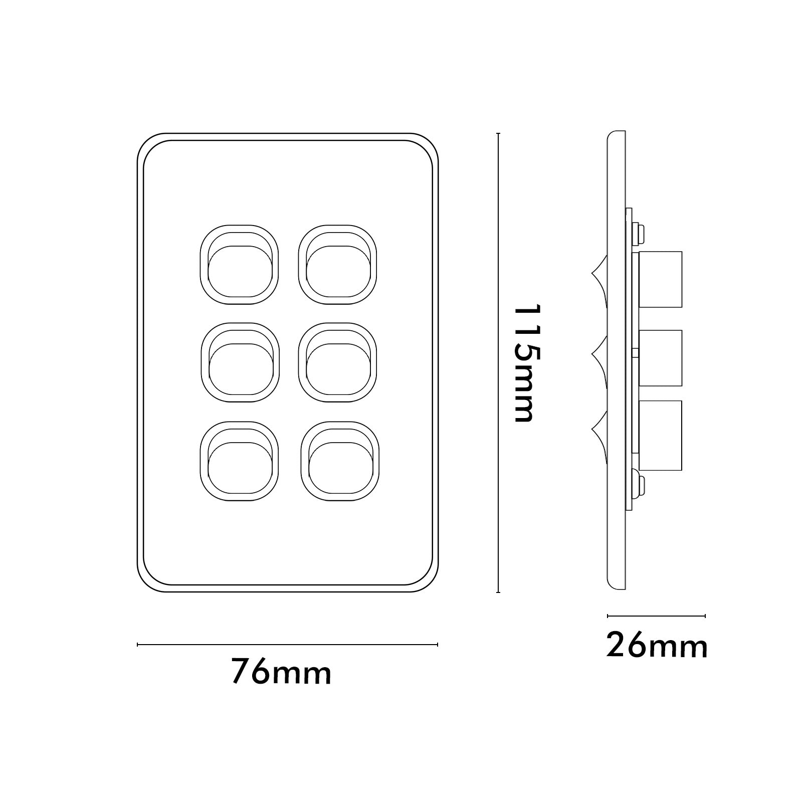 DETA S-Line six vertical switch features a 4.3mm ultra-low profile face plate. The switch can be changed to standard switch mechanism for different applications.