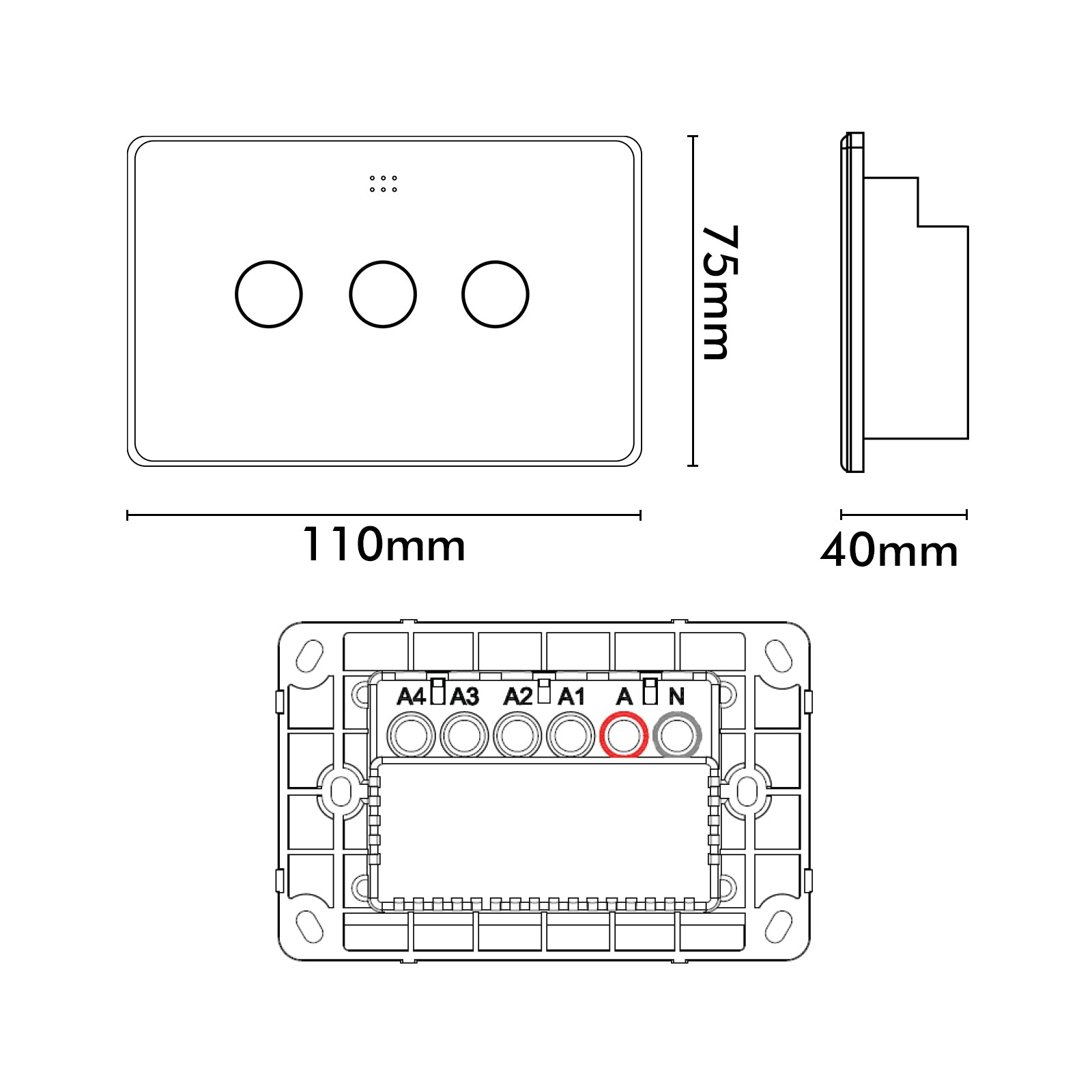 DETA Gloss White Grid Connect Smart Triple Gang Touch Light Switch
