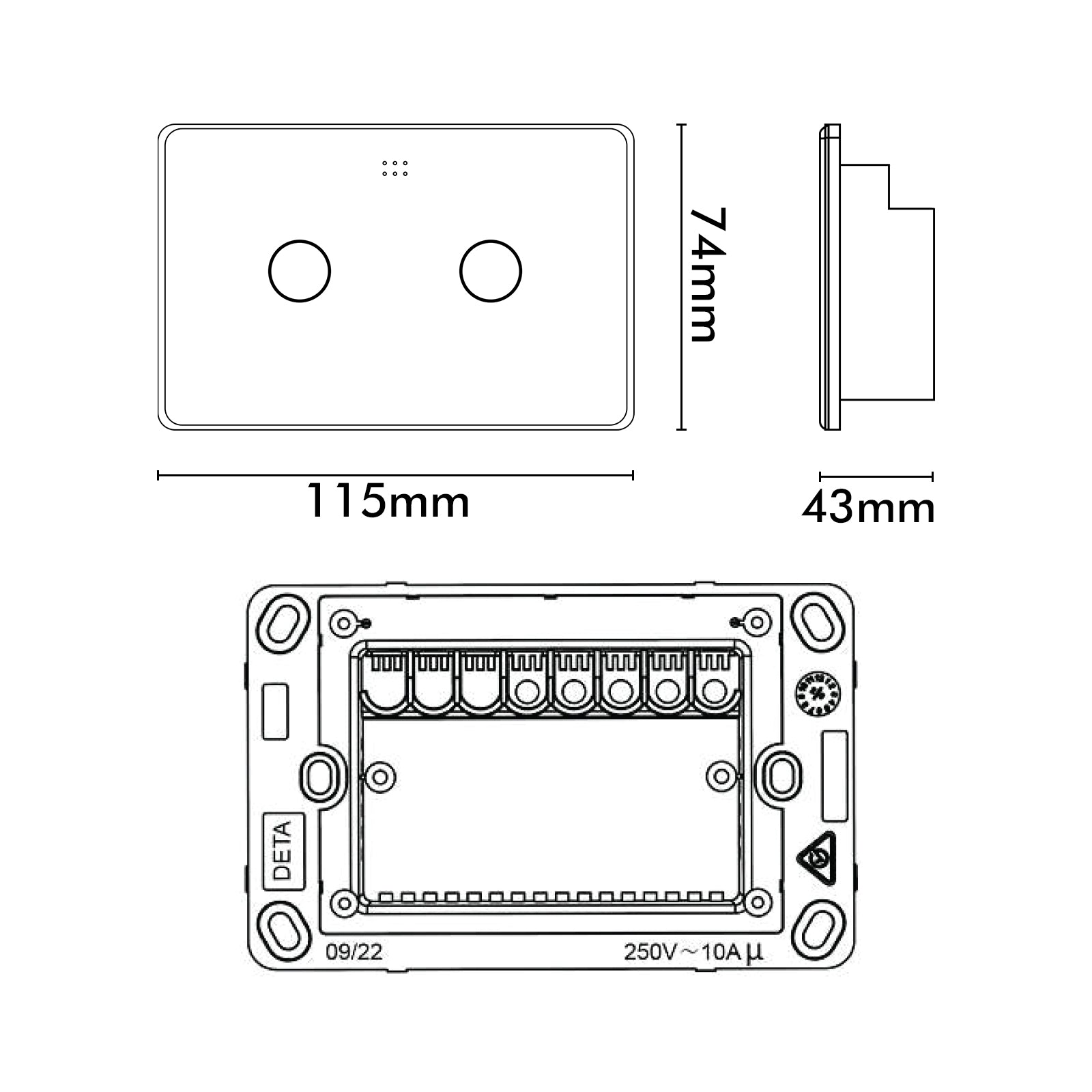 DETA Grid Connect Smart Double Gang 2 Way Touch Light Switch