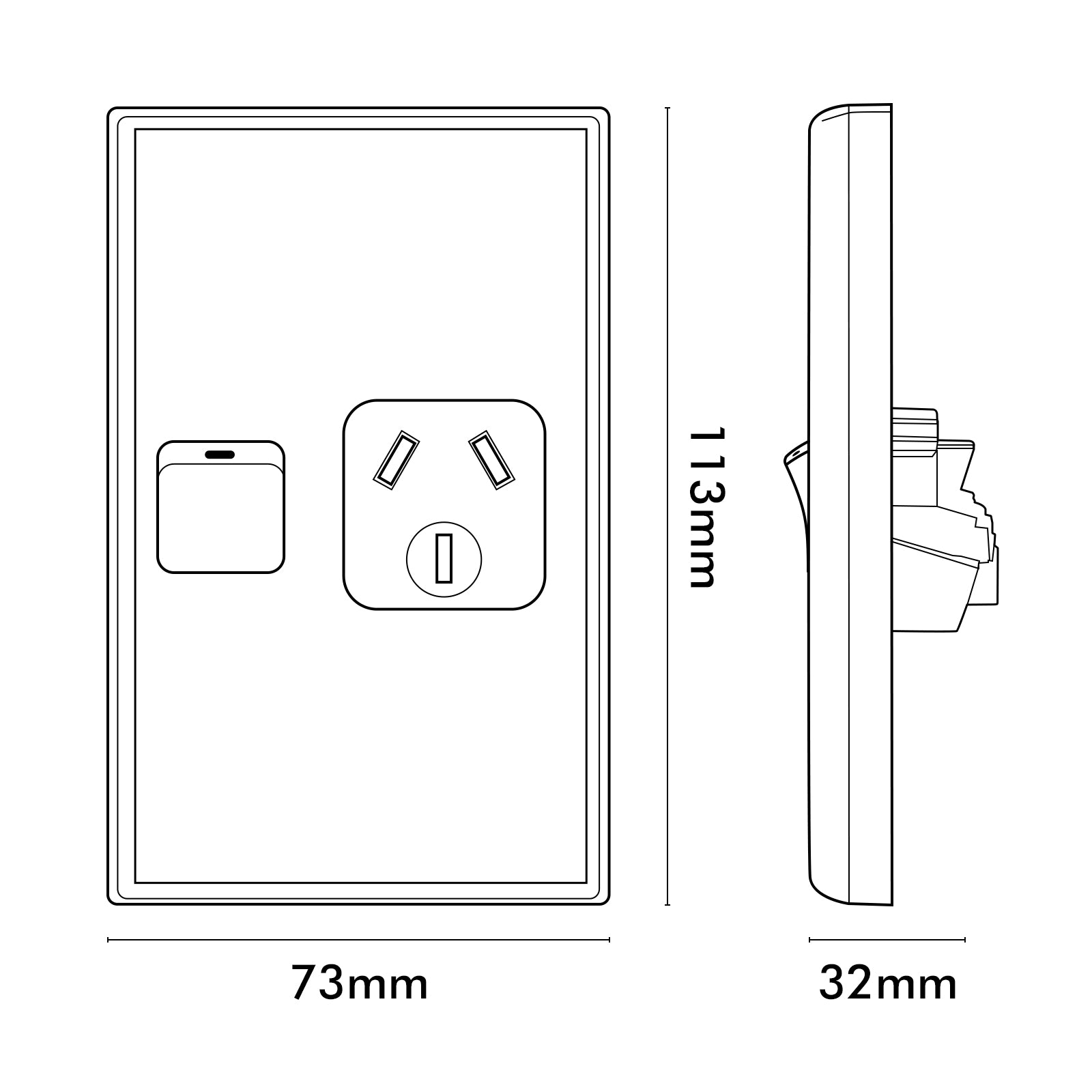 This DETA Vertical Single PowerPoint is rated at 250V 15A. It has an interchangeable clip-on cover that is Australian and New Zealand standards approved.