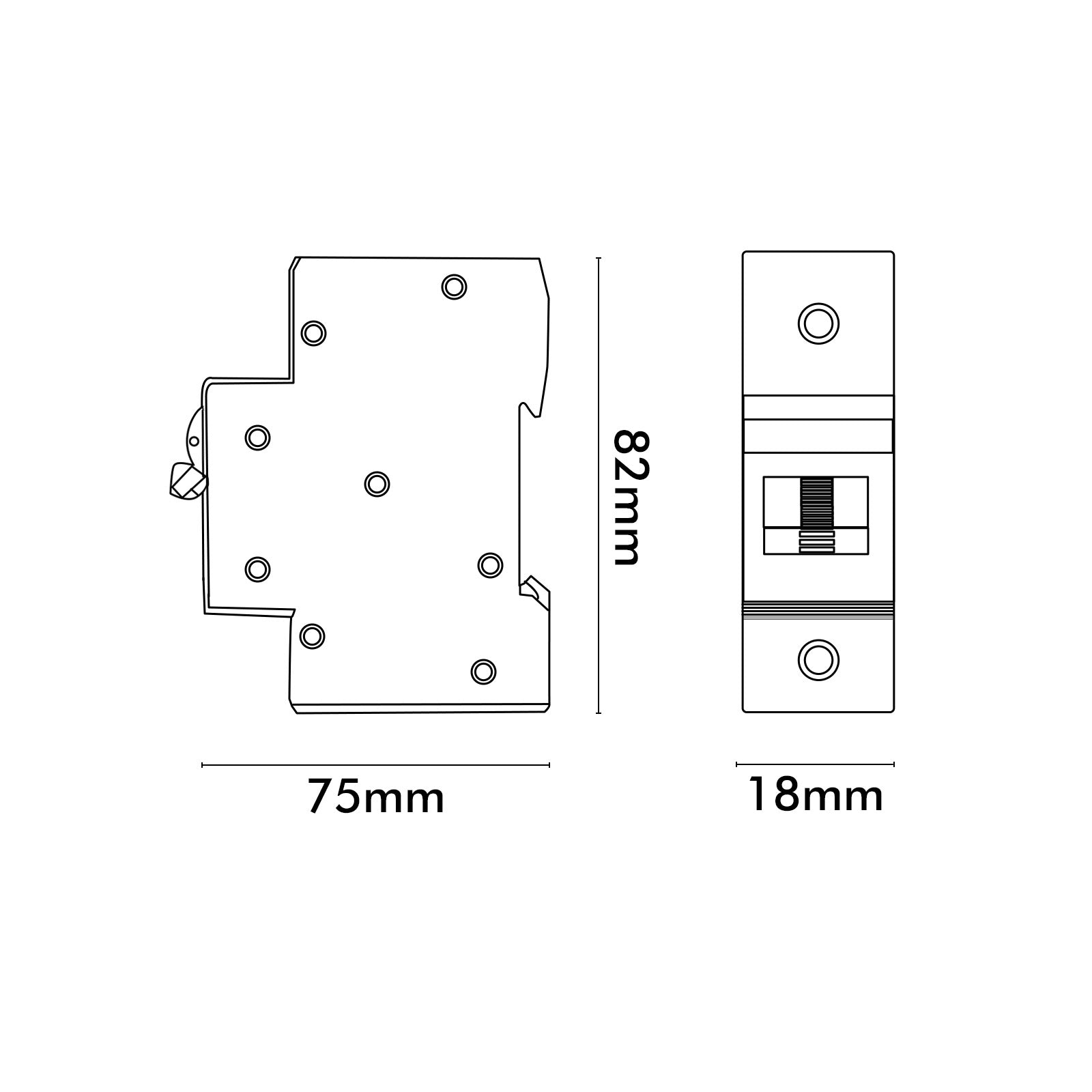 The DETA 20A Miniature Circuit Breaker (MCB) protects against both overload and short circuits. It has a short circuit capacity rating of 10kA and is one pole (18mm wide) and suitable for DIN rail mounting in flush or surface-mounted switchboards or enclosures.