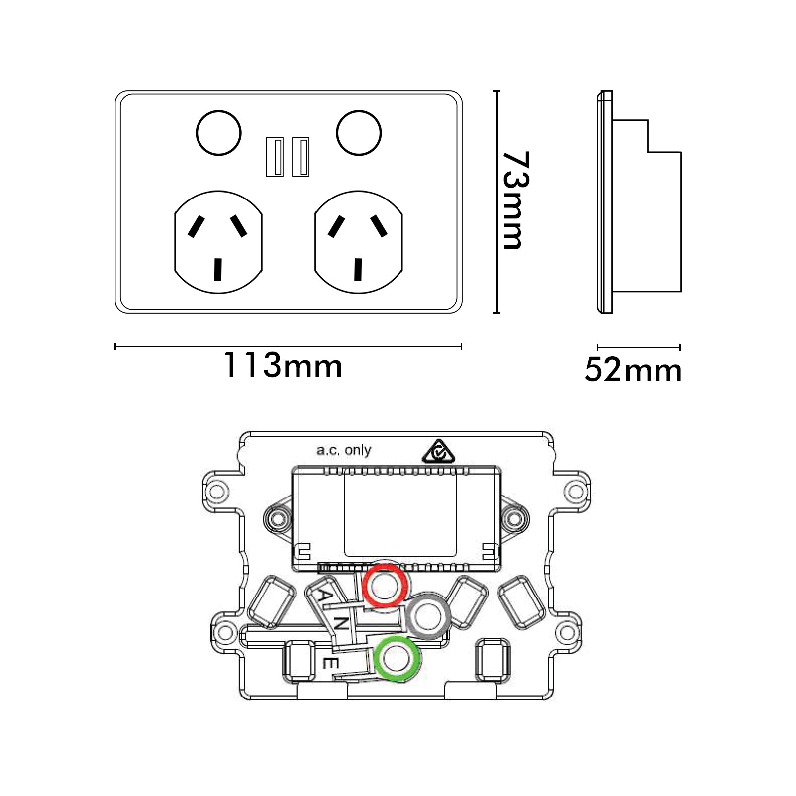 - Each outlet is equipped with a capacitive touch-sensitive switch, allowing for effortless on/off control.