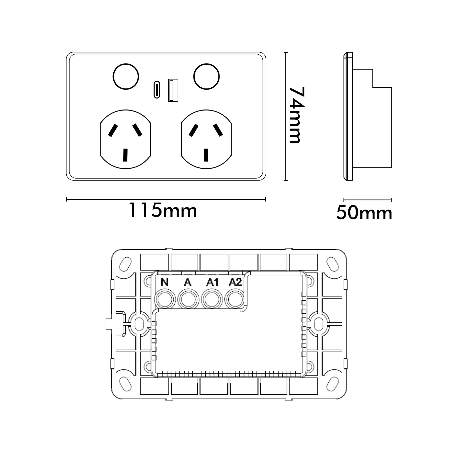DETA Touch Double PowerPoint with USB A+C PD20W Fast Charging offers simultaneous charging for multiple devices with cutting-edge speed and efficiency. It features a gloss white clip-on cover and an advanced touch-activated switch with a blue LED power indicator. The USB A+C fast charging ports ensure compatibility with a wide range of electronics, from smartphones to tablets. It is a perfect solution for modern homes and offices, and it can be mounted in standard mounting brackets and boxes.