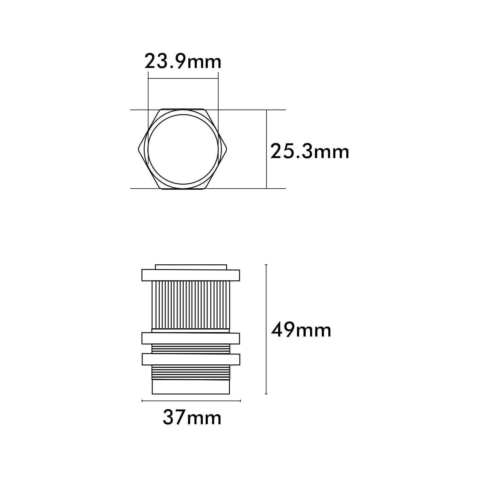 DETA Conduit Fitting with solid corrugated conduit glands, locking ring, plain-to-threaded heavy duty design.