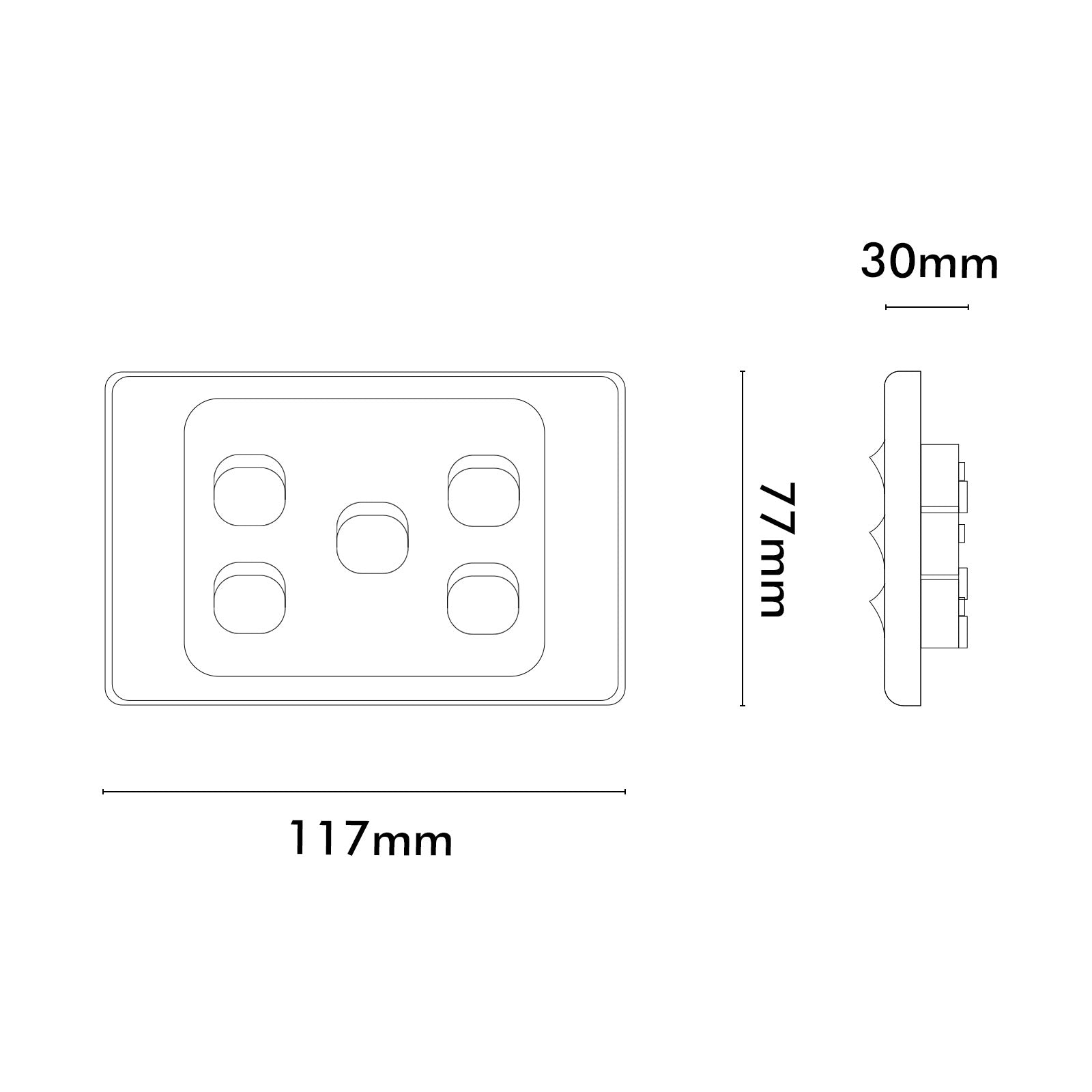 DETA 5 Gang Light Switch provides multiple switch positions in one location. All switches are suitable for 2 way switching and include a loop terminal. The standard pattern design comes complete with clip on surround.