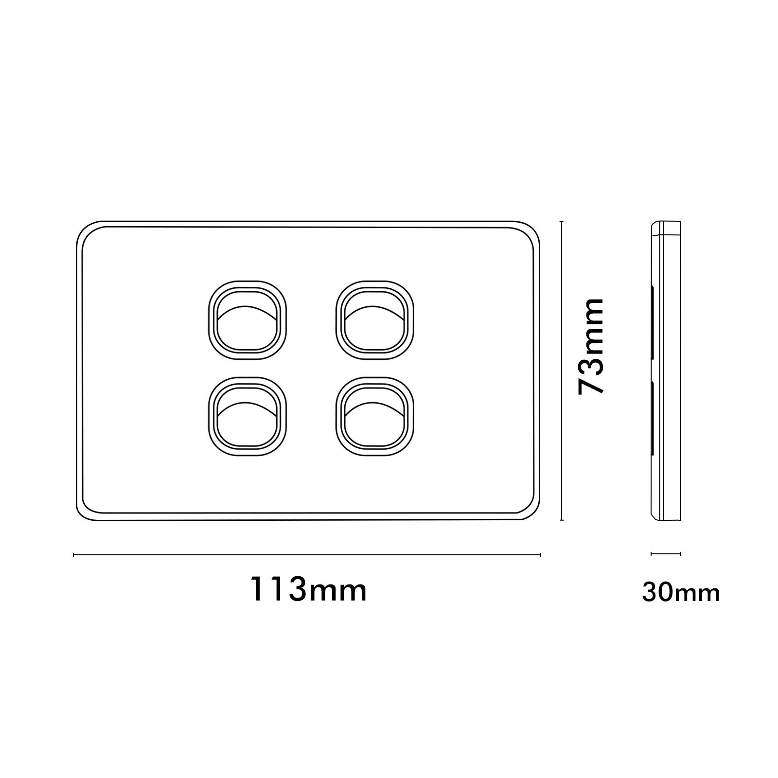 DETA four gang light switch provides multiple switch positions in one location. All switches are suitable for 2 way switching and include a loop terminal. It also features new classic design flush clip on cover.